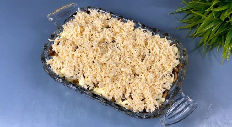 - Наступним прошарком викладаємо плавлені сирки натерті на дрібній тертці.